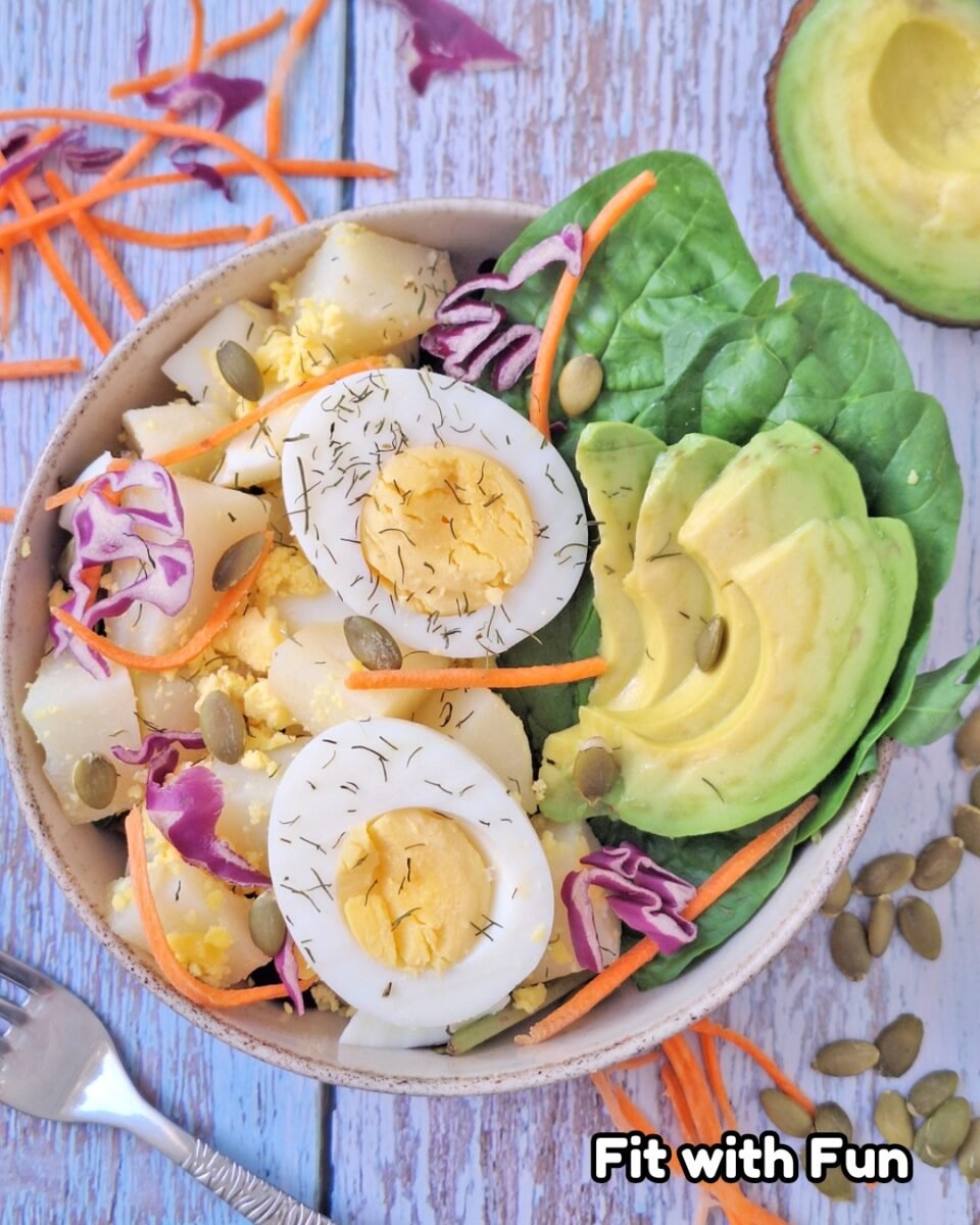 3 ricette di insalata di patate bilanciate: vegana, pollo e uovo