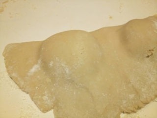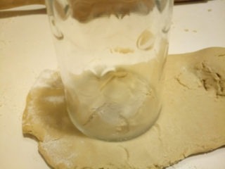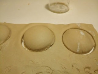 - Con le dita abbassa la pasta intorno al ripieno e con un bicchiere taglia la forma.