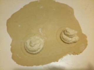 - Versa circa 2 cucchiaini di ripieno al centro dei cerchi. Piega la pasta in modo da coprire il ripieno.